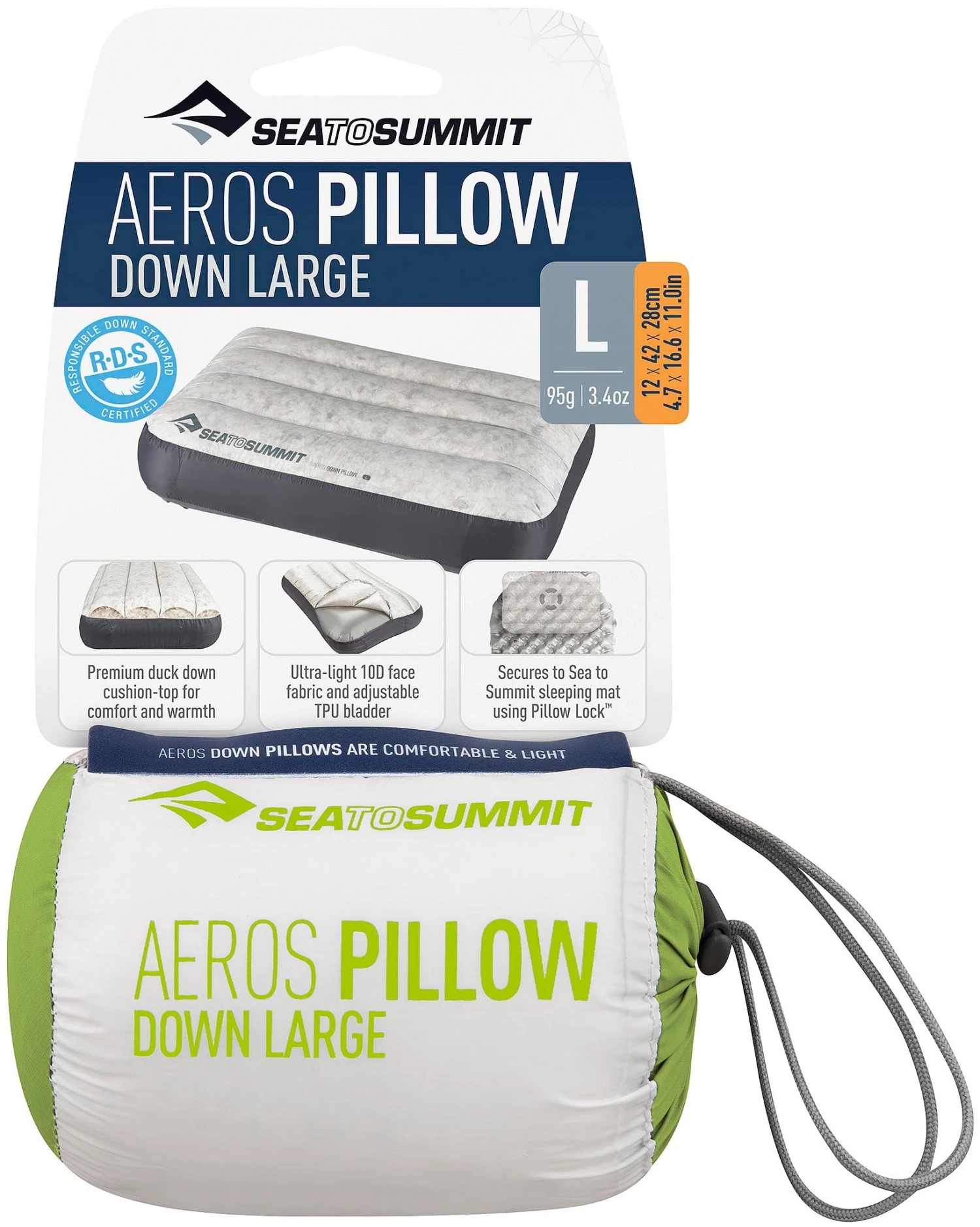 • Weight: 3.3 oz / 95 g|-|Combine la nature ultralégère et super compacte de nos oreillers Aeros™ avec le confort et la chaleur du duvet.