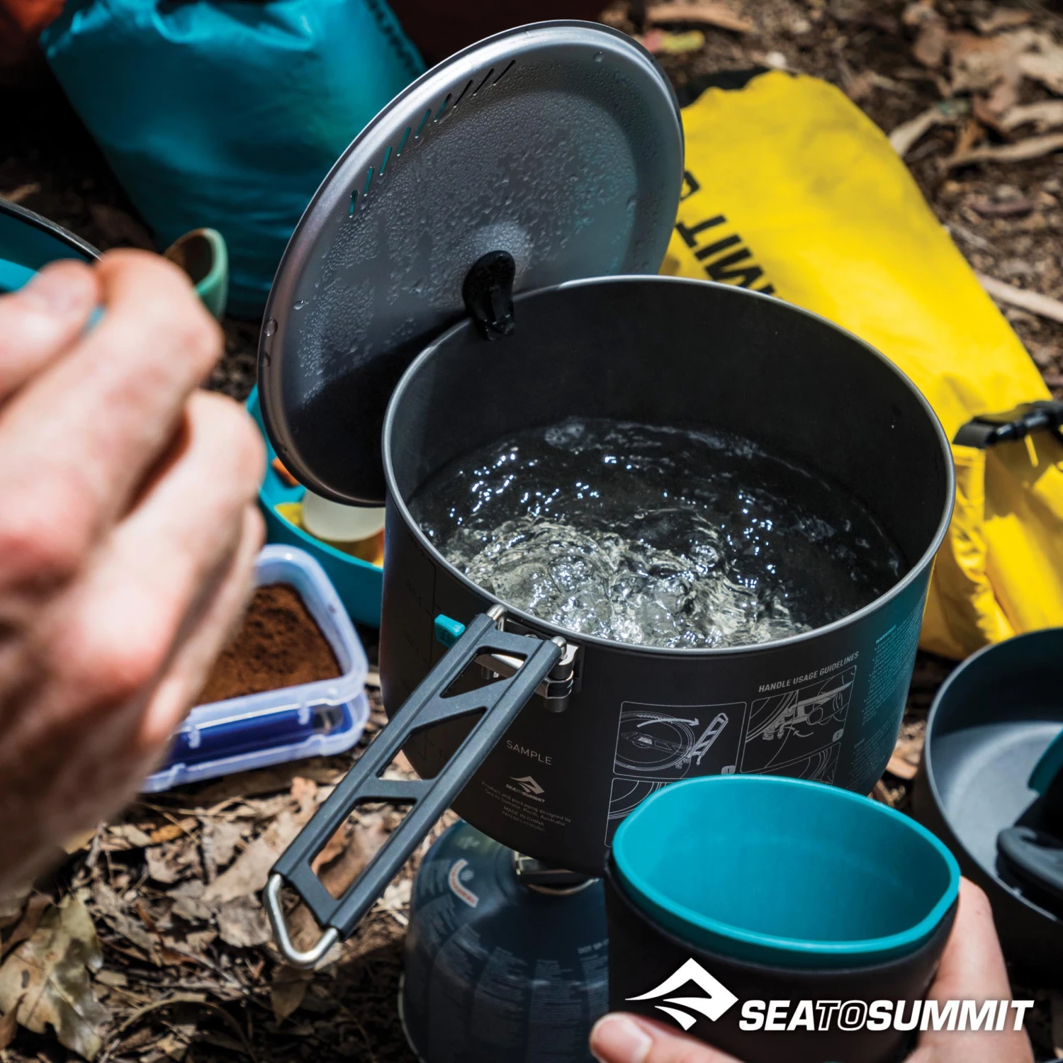 The new Alpha Series Cookware pieces are the latest additions to Sea to Summit’s Camp Kitchen category. Made of a lightweight, hard-anodized alloy, the Alpha Pots have innovative Pivot-Lock™ handles