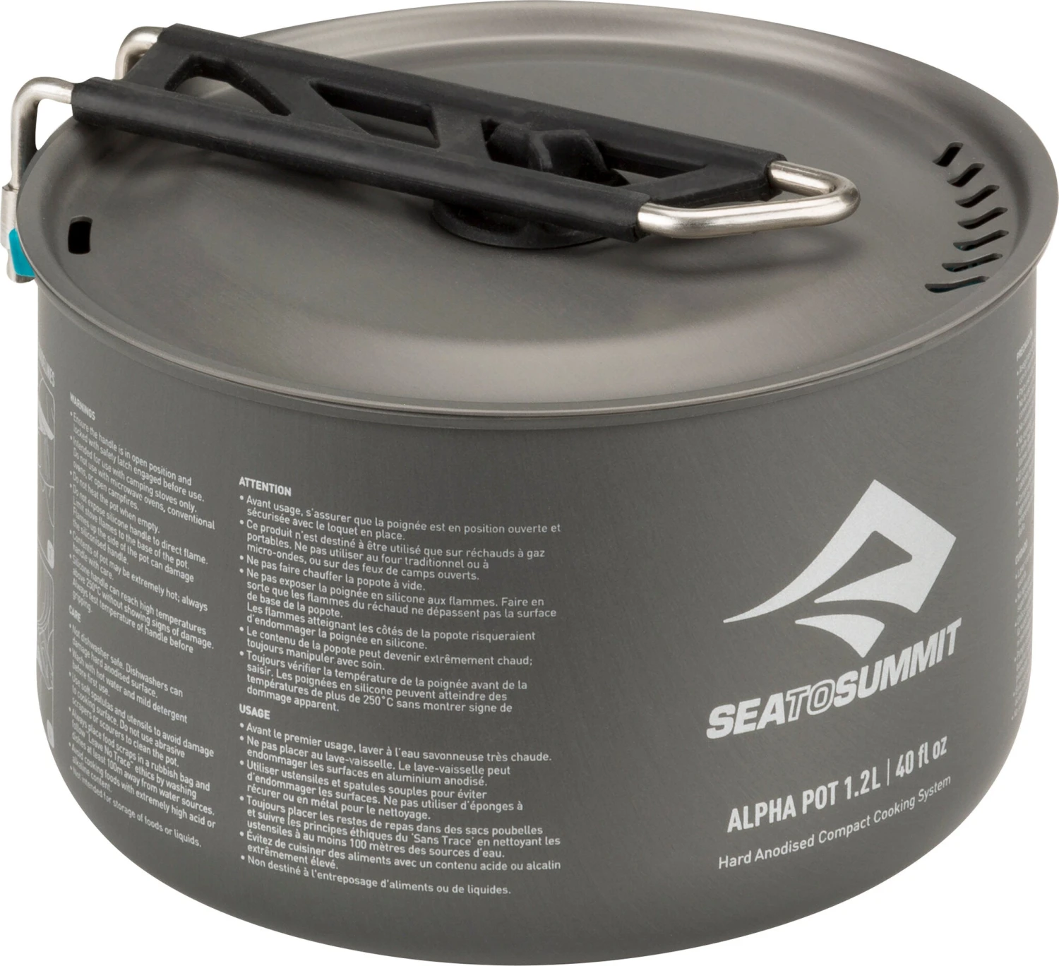 • Weight: 6.6 oz|-|La nouvelle gamme Alpha Series Cookware est la dernière addition à la catégorie Camp Kitchen de Sea to Summit. Faites d’un alliage anodisé léger, les casseroles ont une surface intérieure polie.
