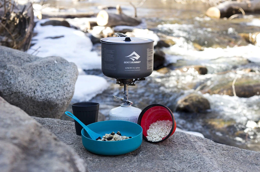 The new Alpha Series Cookware pieces are the latest additions to Sea to Summit’s Camp Kitchen category. Made of a lightweight, hard-anodized alloy, the Alpha Pots have a polished internal surface.