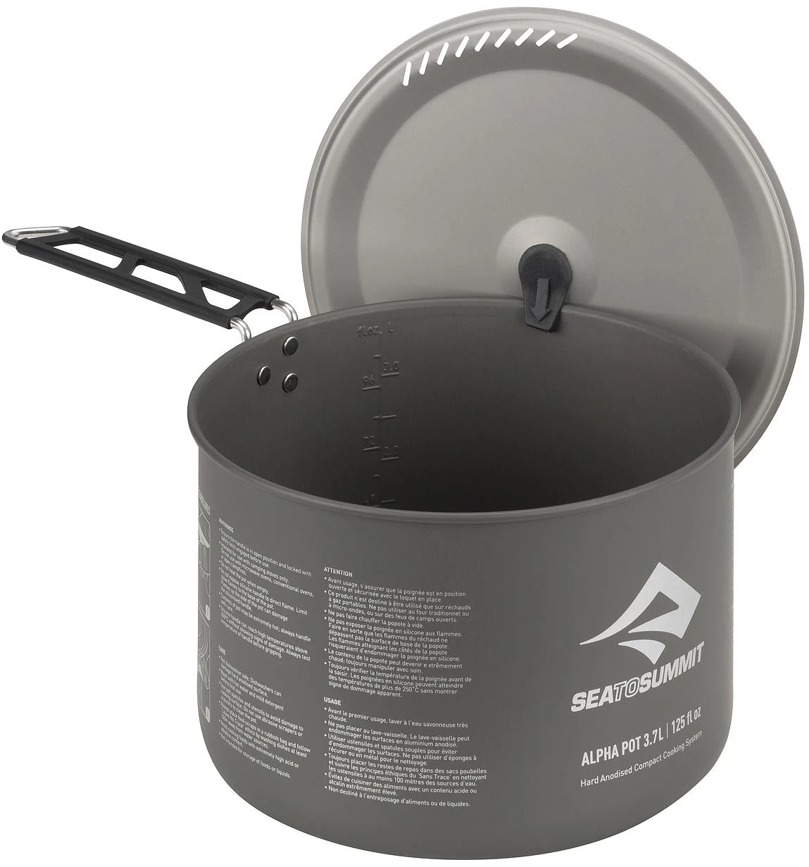 • Weight: 11.9 oz|-|La nouvelle gamme Alpha Series Cookware est la dernière addition à la catégorie Camp Kitchen de Sea to Summit. Faites d’un alliage anodisé léger, les casseroles ont une surface intérieure polie.