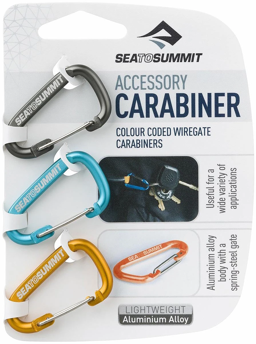 • Sold in a 3-pack, in three different colors (grey, blue, orange)|-|Suite à une demande accrue, Sea to Summit a décidé d’offrir ses mousquetons accessoires seuls. Une solution pratique pour fixer des cordes de haubanage, suspendre des objets, accrocher des clés, et attacher beaucoup d’autres choses.