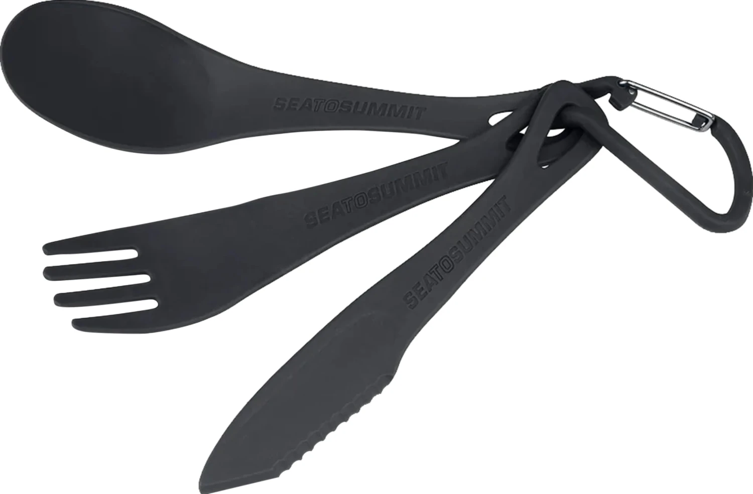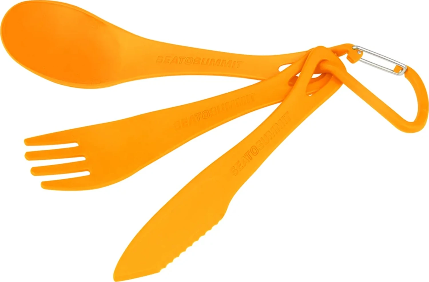 The Delta Cutlery Set is a short knife, fork and spoon set designed to fit inside your Delta Bowl. The supplied carabiner can be used to hang or clip the 3 piece set together. The knife is half plain blade for easy spreading and half serrated to aid cutting.