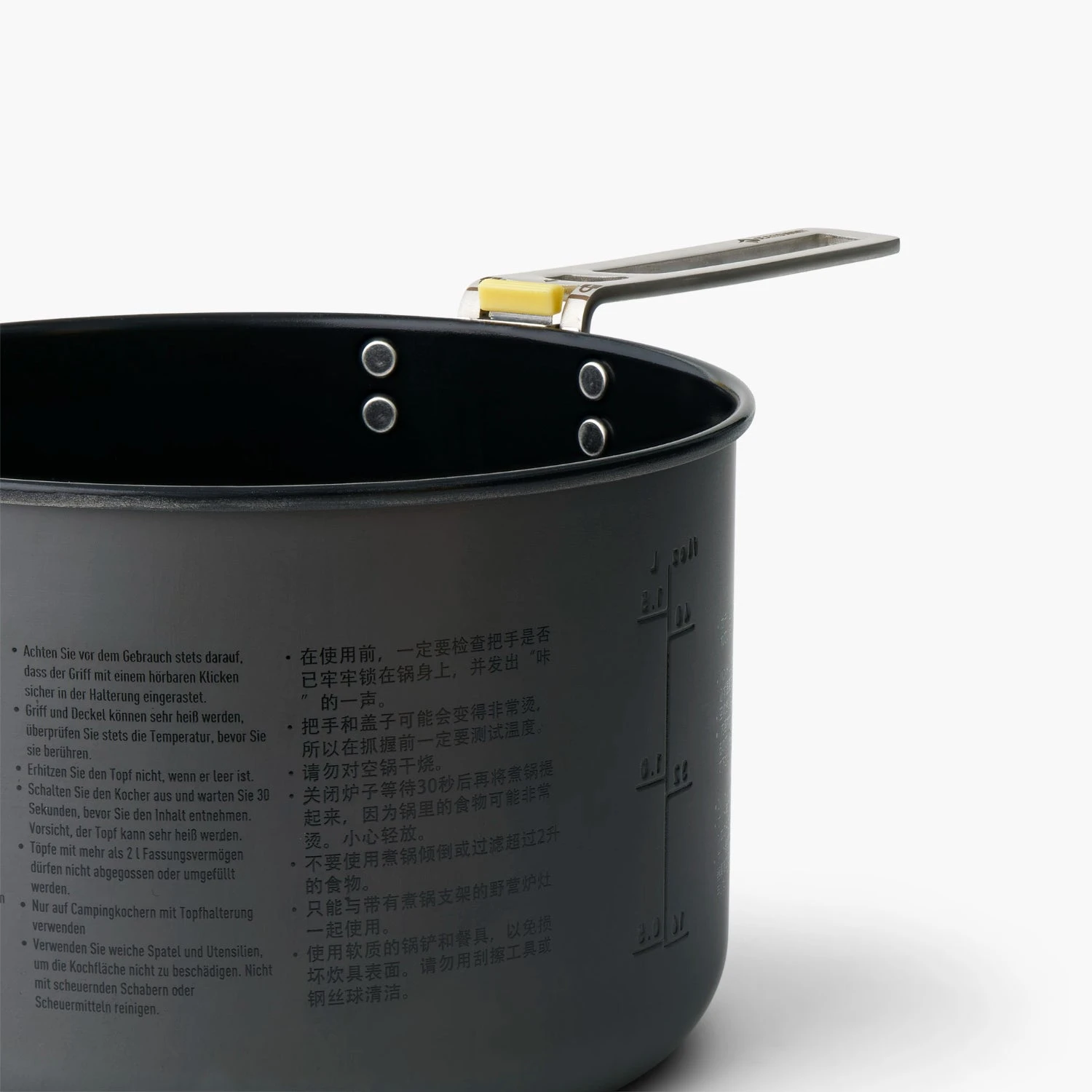 - Nests with Frontier Pots for space-saving packability.