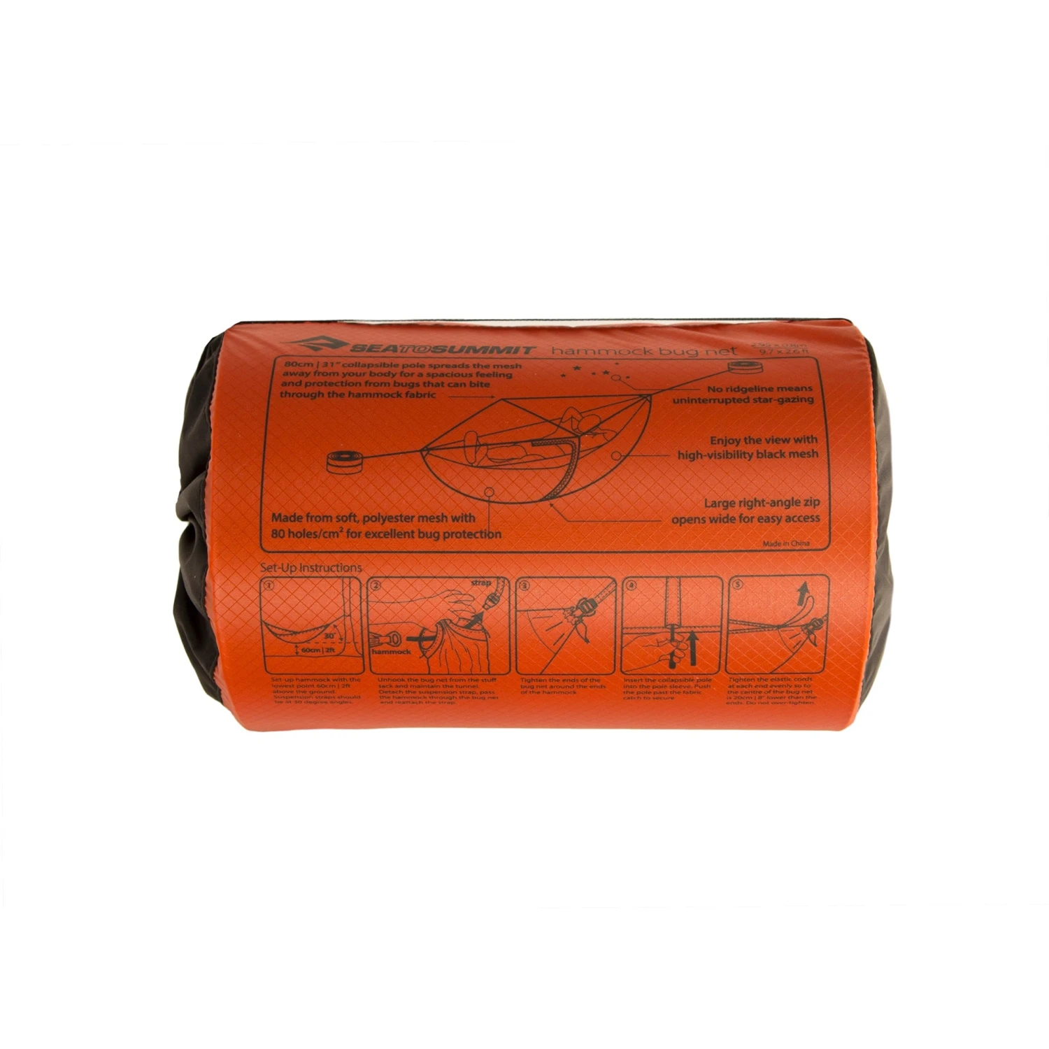 This unique bug net design, with a collapsible spreader pole, offers superb protection and a spacious interior. With no ridgeline, your star gazing is unimpeded and, most importantly, this bug protection guarantees you don’t make any unwanted friends during the night. Made from breathable, high visibility black polyester mesh with 500/sq in (80 holes/cm²) for excellent protection from insects. It’s easy to set up and easy to get out of, with its wide-zippered opening. Designed to work with all Sea to Summit hammocks, as well as most existing hammocks.