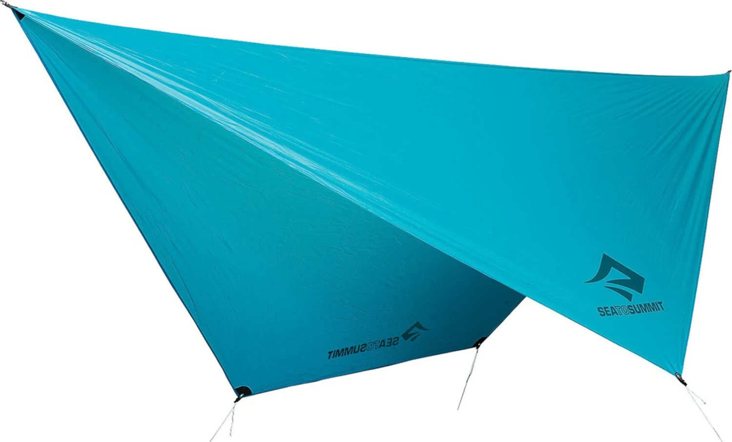 The Hammock Tarp is ideal for creating a waterproof shelter over your hammock during inclement weather. It provides excellent waterproof coverage without adding excess weight or bulk, and uses a 5-point design with a single tie-out point on one side that provides space to cook under while sitting in the hammock.