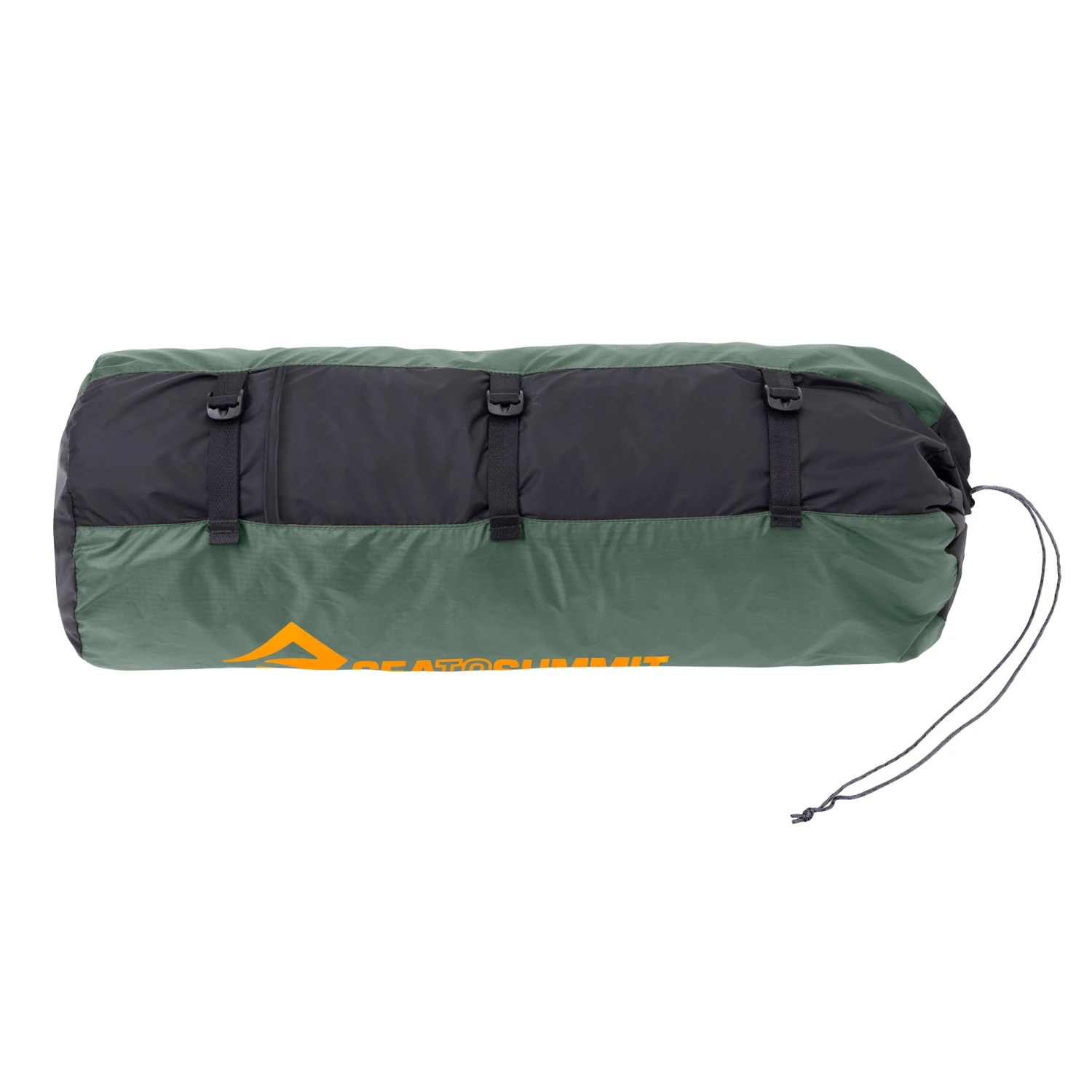 The Ikos tents build on the design advances made in our award-winning ultralight Telos Tension Ridge tents. They feature the same great livability and versatile setup options for everyday backpacking and vehicle-supported camping in a larger, more comfort-oriented format. Four inner pockets and a gear loft provide plenty of space for your gear, and the rectangular tub floor offers room for two regular rectangular sleeping pads. Sea to Summit material quality and attention to detail complete the package. The floor is a 68D polyester with a 4,000mm hydrostatic head, and a footprint which extends to the tips of the vestibules is available. A DAC MX poleset supports an 1800mm 68D polyester ripstop rainfly that is flame retardant-free and treated with a C0 non-PFC DWR. Machined-aluminum pole feet/rainfly C-clips make pitching easy. If your focus is comfort rather than gram counting, and you’re looking for a tent for two people ( maybe a dog) that you can count on- the Ikos TR2 could be your amazingly spacious home away from home.