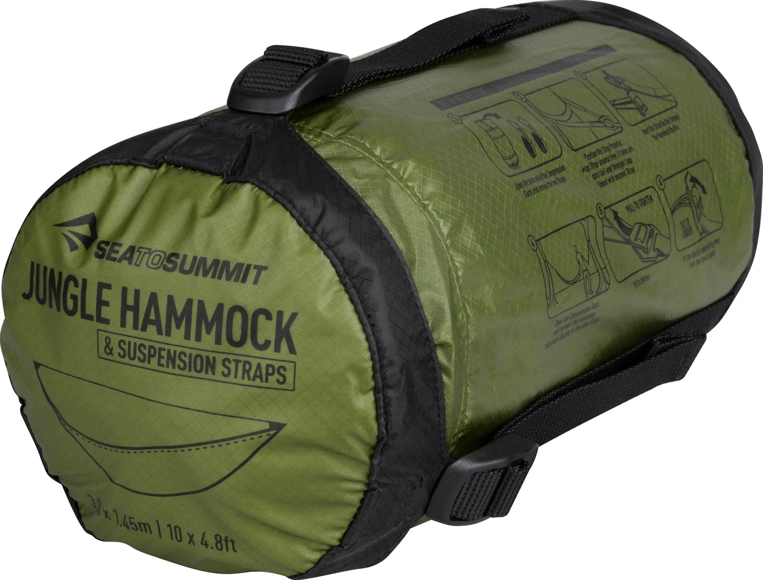 Facile à utiliser, l’ensemble de hamac Jungle est fabriqué en nylon ripstop léger et respirant de 70 deniers. Il est également pourvu d’un filet monofilament haute ténacité, de sangles en Dyneema® et de boucles en aluminium anodisé 6061 résistant à la corrosion.