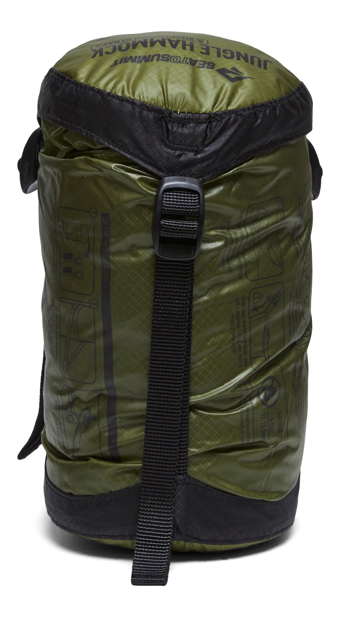 The easy-to-use Jungle Hammock is constructed using breathable, lightweight 70 denier ripstop nylon, high-tenacity monofilament netting, Dyneema® webbing and corrosion-resistant anodized 6061 aluminum buckles.