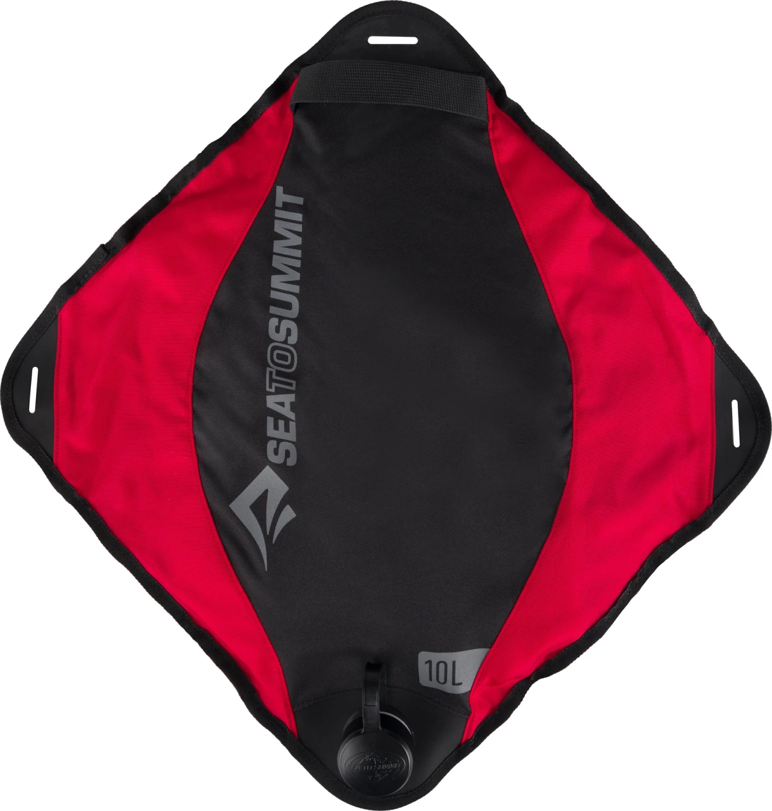 • 10 liter 338 fl oz/6.8 oz 14.5|-|Réservoirs à eau suspendables de 4, 6, 10 litres. Poche traitée ne retenant pas les goûts et les odeurs, enveloppe en Nylon 210 deniers. Système d’accroche polyvalent.