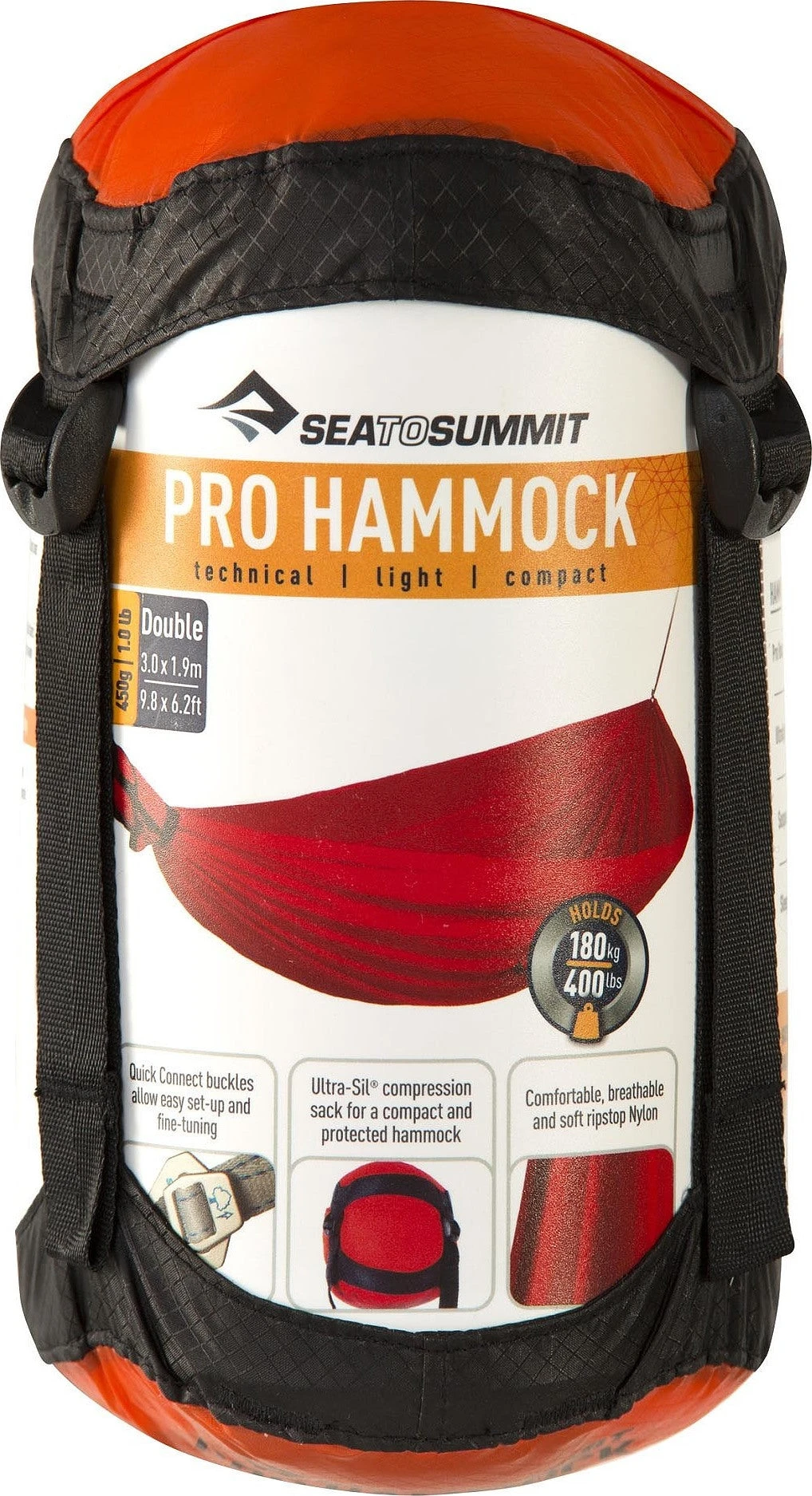 • Weight : 23.6oz / 670g|-|Les hamacs Sea to Summit font partie des équipements techniques, légers et très compacts. Avec leur installation et leur réglage rapides et facile à utiliser, ils sont parfaits pour les randonneurs à la journée souhaitant se détendre en plein air ainsi que pour les aventuriers devant camper dehors. La compacité a été réduite en utilisant des sangles minimalistes et à haute résistance. Tissu ultra-léger livré dans un sac de compression en Cordura Nylon. Combiné avec des sangles de suspension de 15mm tenant à l’intérieur du sac de compression, l’ensemble du système n’est qu’un léger et petit complément à votre équipement. Une gamme d’accessoires est disponible pour rendre votre hamac indispensable pour dormir à la belle étoile. Elle comprend une bâche, un flet anti-insectes et un porte-accessoires