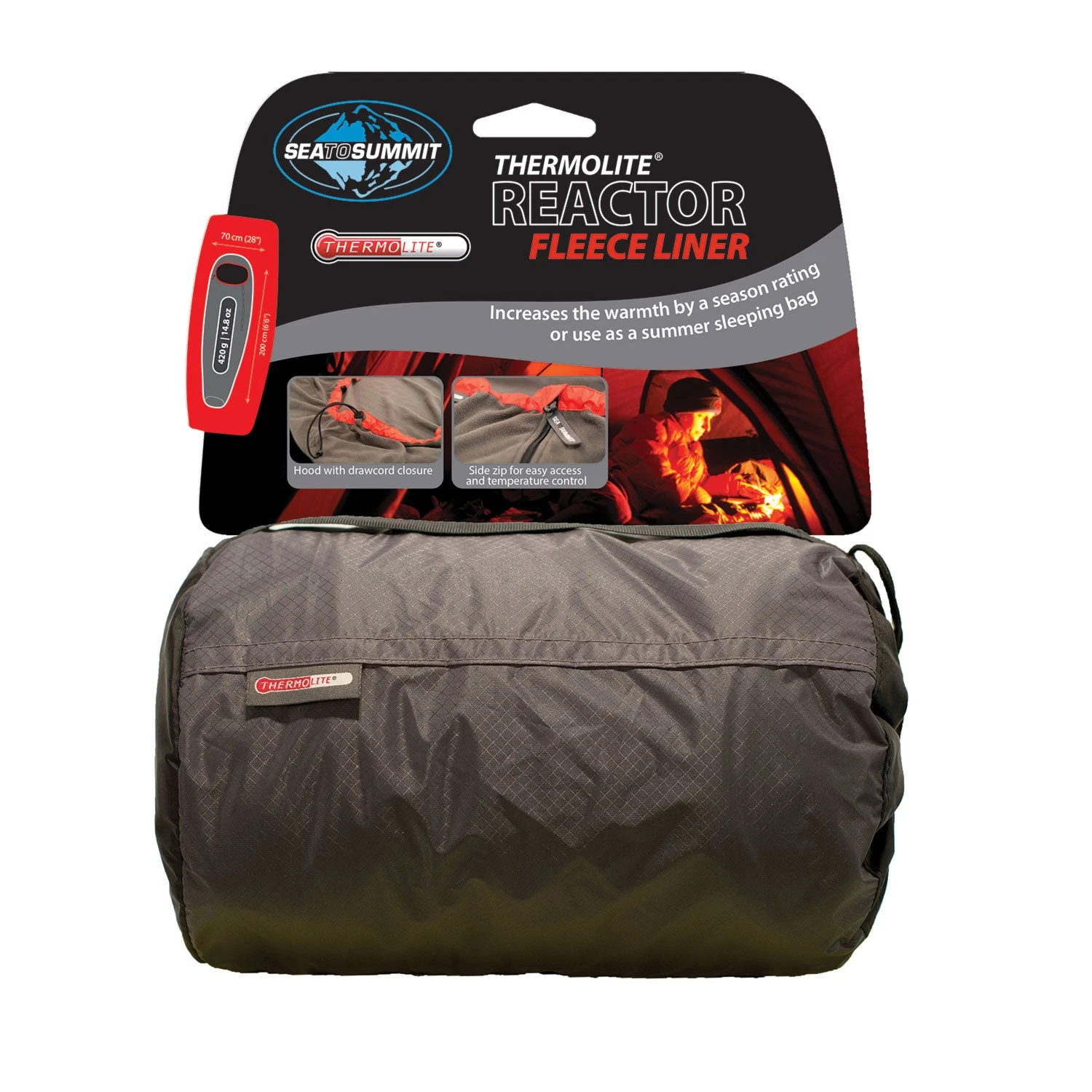 • Weight: 420g.|-|La doublure de laine polaire Thermolite est la plus chaude de notre gamme Reactor et peut être utilisée pour augmenter la chaleur de votre sac de couchage ou seule, comme sac d’été. La laine polaire Thermolite est incroyablement chaude par rapport à son poids et nous avons donné un fini brossé à ce tissu pour plus de confort. La glissière un quart permet de s’y glisser et d’en sortir plus facilement et le panneau de capuchon peut être tiré lorsqu’un maximum de chaleur est nécessaire.