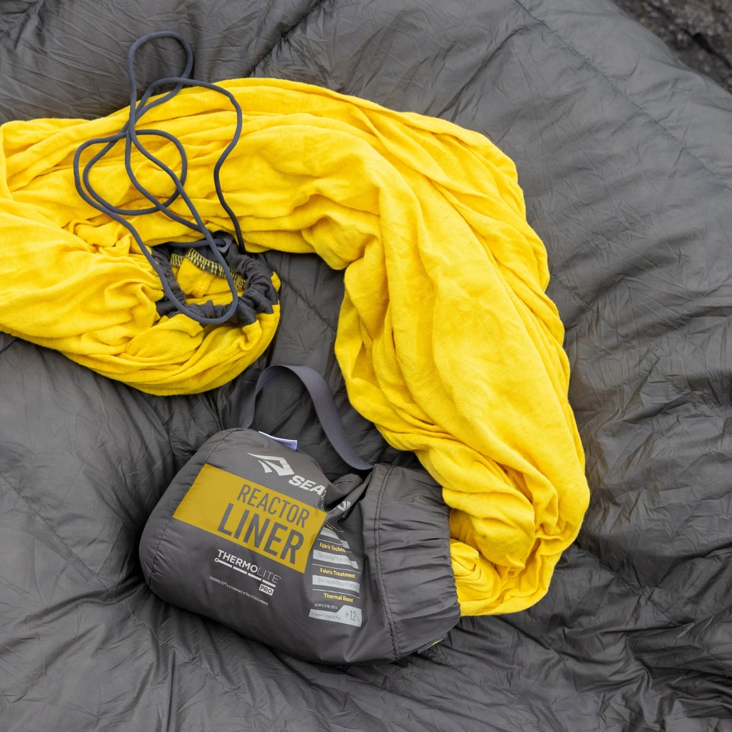 Amplify the cosiness and heat retention of your sleeping bag with the Sea to Summit Reactor Liner w/ Drawcord, which comes in two sizes. Designed with specialized Thermolite® Pro material, this liner is shaped in a mummy style and equipped with cutting-edge infrared technology and flexible stretch fabric to improve insulation. It offers a +12% thermal increase for 1-season sleeping bags and +6% for 3-season sleeping bags, making it ideal for moderately chilly camping and backpacking conditions.
