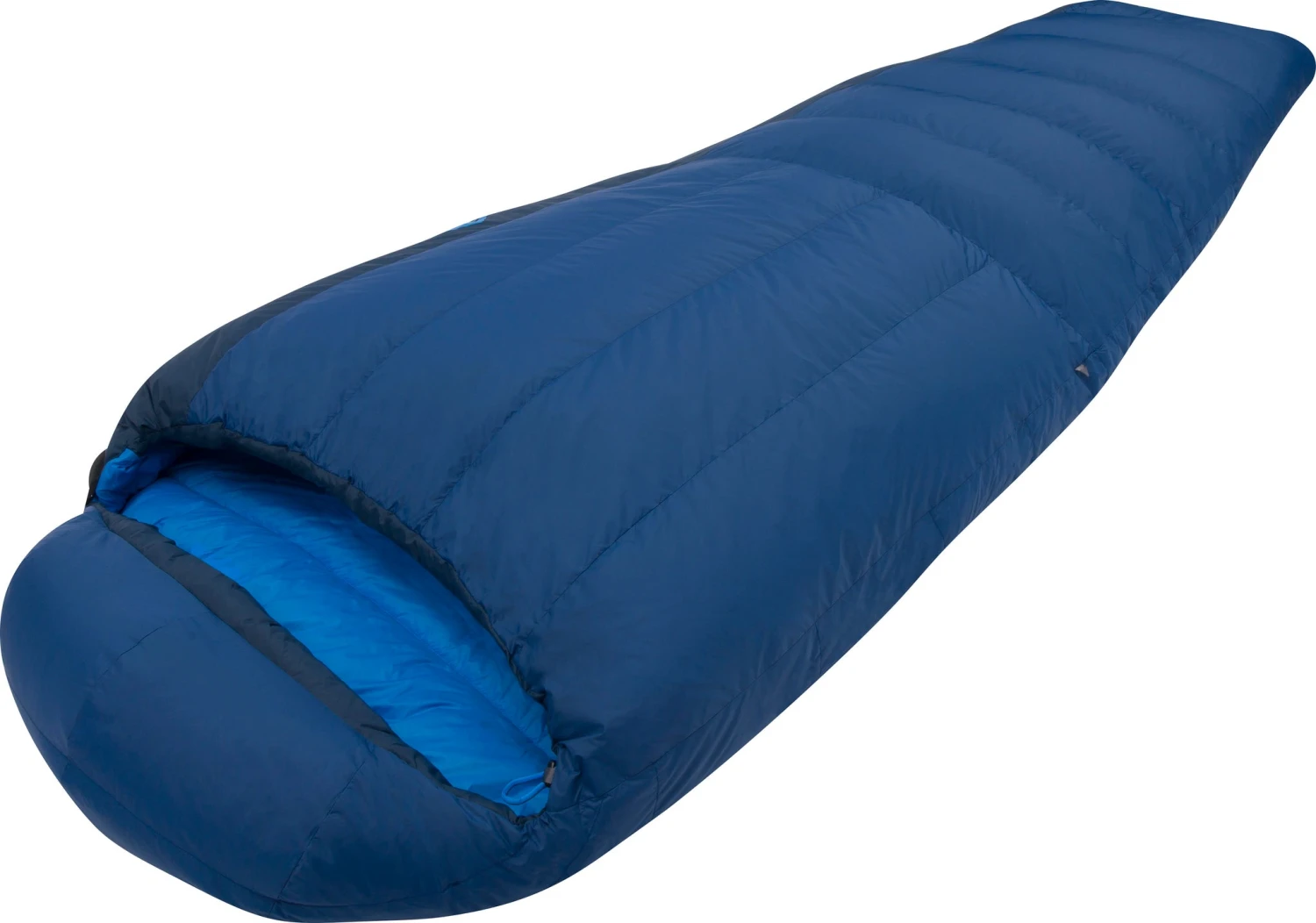 Vertical baffles over the chest prevent down shift towards the sides of the bag during sleep, and the side block baffle construction maintains the 60/40 upper to lower fill ratio. The 3D sidewall baffle ensures that the down can loft to the very edge of the bag, and the hood and oversized draft tube help retain warmth. Lightweight fabrics-including a soft-touch 20D Nylon lining-reduce weight and packed volume.