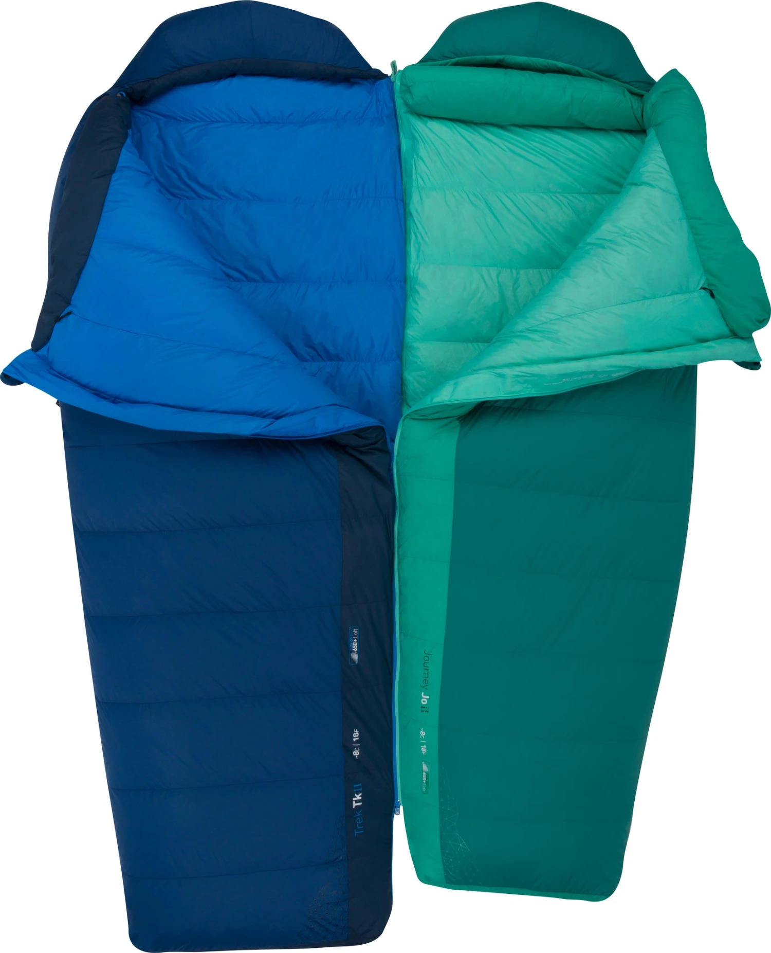 The full-length two-way #5 Ykk side zip and secondary footbox zip offer unparalleled ventilation and allow the Trek to be used as a quilt. Zippers are backed by an effective anti-snag material.