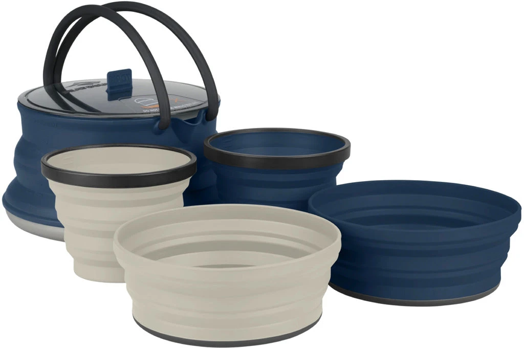 The X-Set 12 is based on our brand new 2.2L X-Kettle, and features our best-selling X-Bowls and X-Mugs. The 2.2L kettle has all your camp meals and beverages from morning coffee to freeze-dried pouches to backcountry gourmet meals covered.